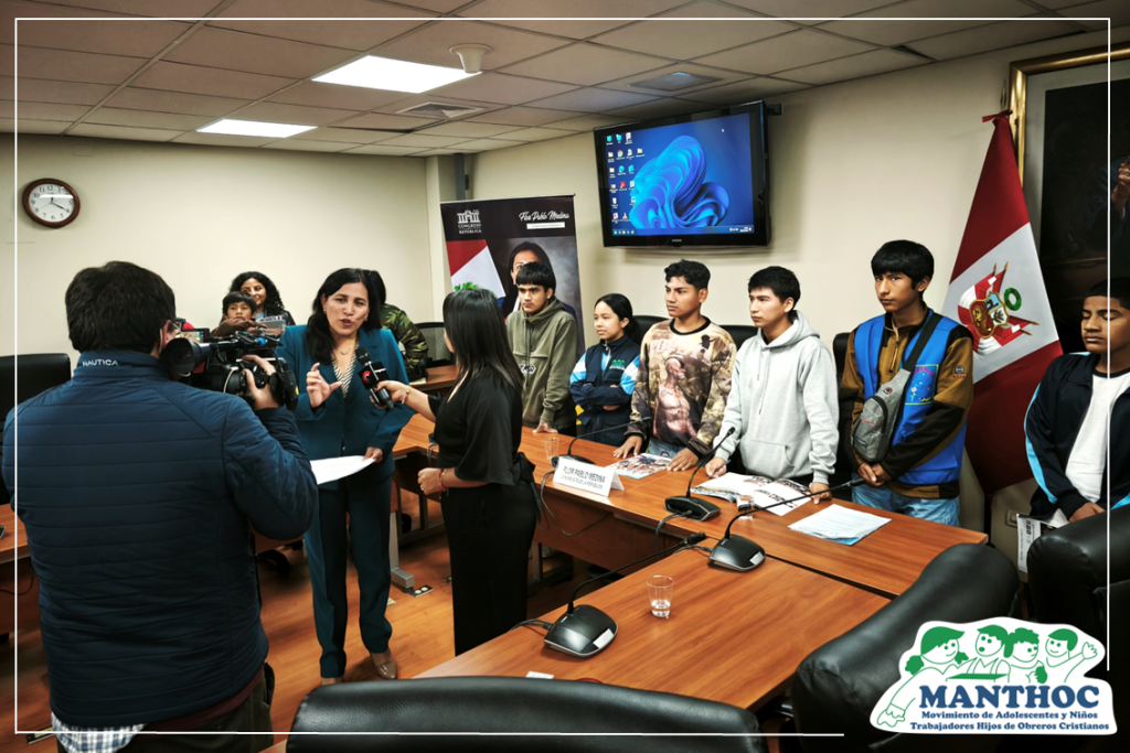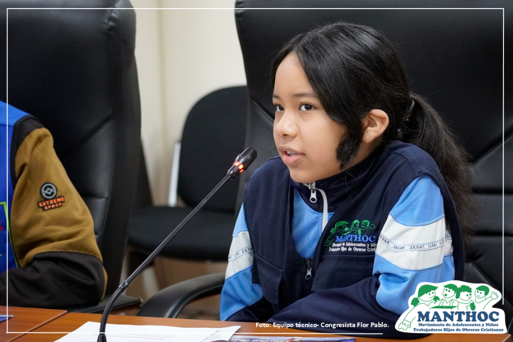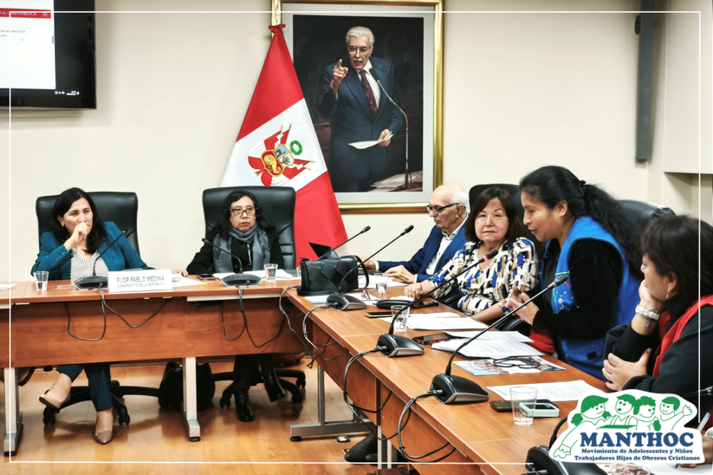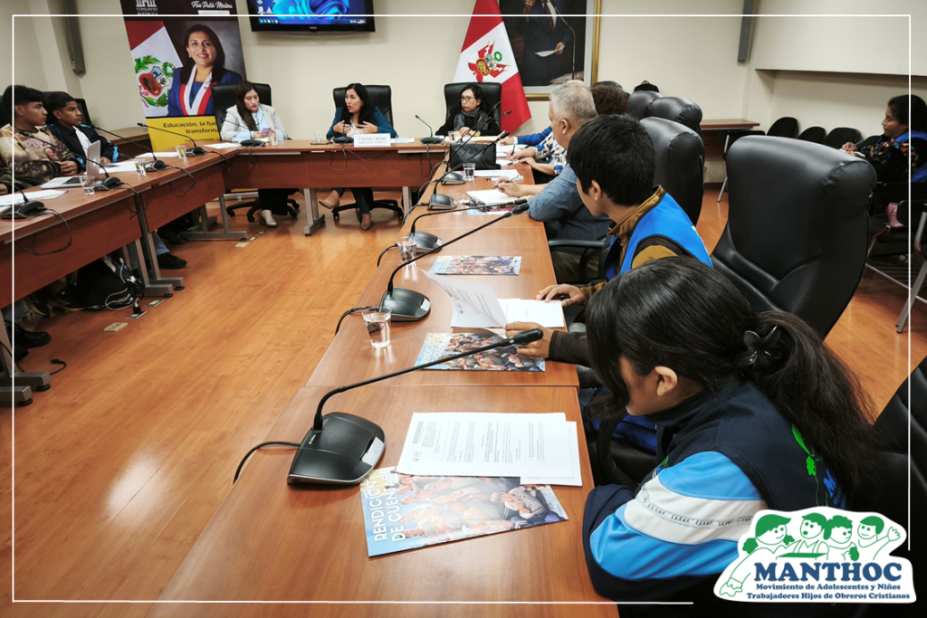 En el marco de la discusión del Proyecto de Ley N.º 9465, que busca erradicar el atraso escolar en el país, niñas, niños y adolescentes trabajadores del grupo MANTHOC Yerbateros participaron activamente en una mesa de trabajo convocada por la congresista Flor Pablo. Esta iniciativa fue recientemente dictaminada en la Comisión de Educación del Congreso de la República.